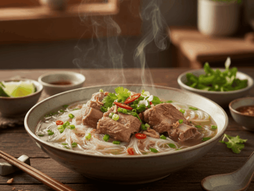 Miến sườn thơm ngon đậm vị, nước dùng trong, sườn mềm ngọt