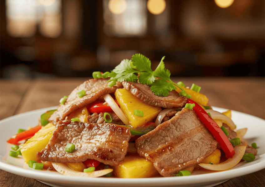 Món thịt ba chỉ bò xào dứa chua ngọt thơm ngon
