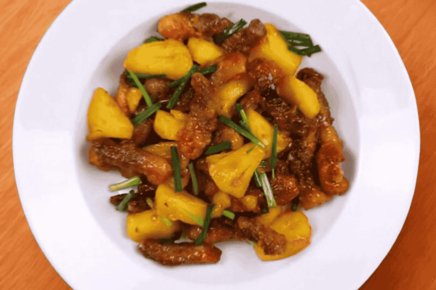 Cách chế biến: Xào nhanh trên lửa lớn, giữ độ mềm của thịt và vị chua tự nhiên của dứa
