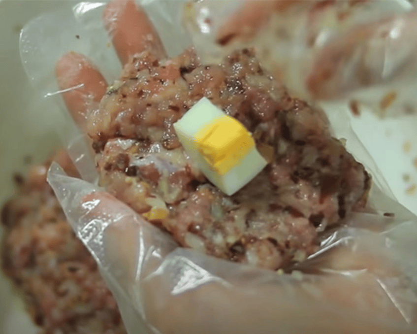 - Chia nhân thành phần nhỏ, đặt trứng cút vào giữa.