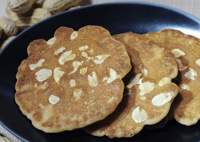 • Làm nóng chảo chống dính ở 160–170°C, phết một ít bơ. Múc từng muỗng bột vào, dàn tròn vừa phải, chiên 2 mặt đến khi vàng đều.