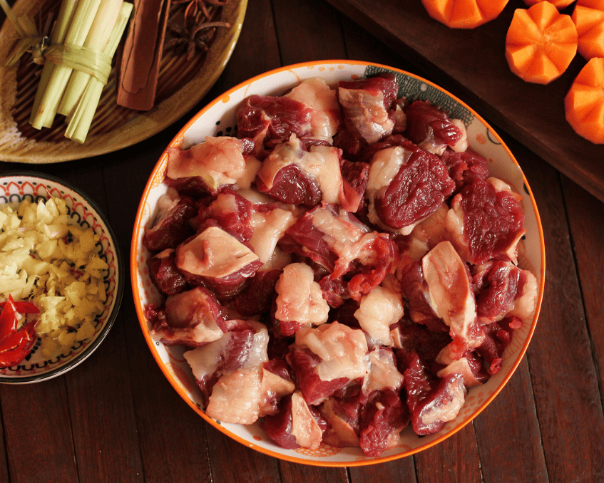 - Thịt bò: Nên chọn thịt bắp, nạm hoặc gân bò – những phần có cả nạc và gân