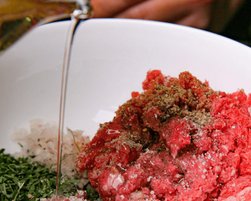 - Trộn thịt bò với hành, tỏi, tiêu, nước mắm, dầu ăn.
