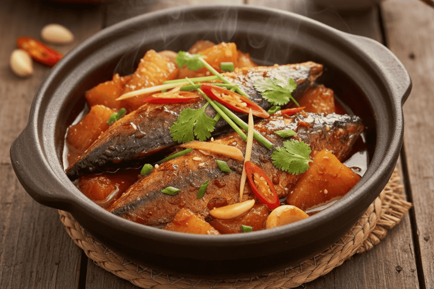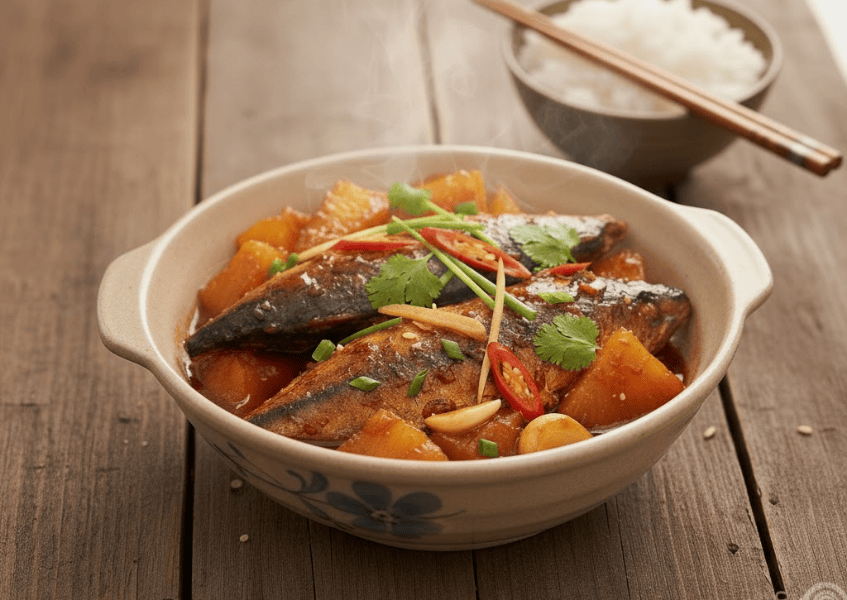 Kho cá với thơm
