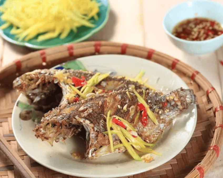 Cá được sơ chế kỹ, khử tanh bằng muối hoặc chanh, sau đó áo nhẹ lớp bột hoặc để nguyên, chiên vàng đều hai mặt cho đến khi giòn rụm. - Cách trình bày & thưởng thức: