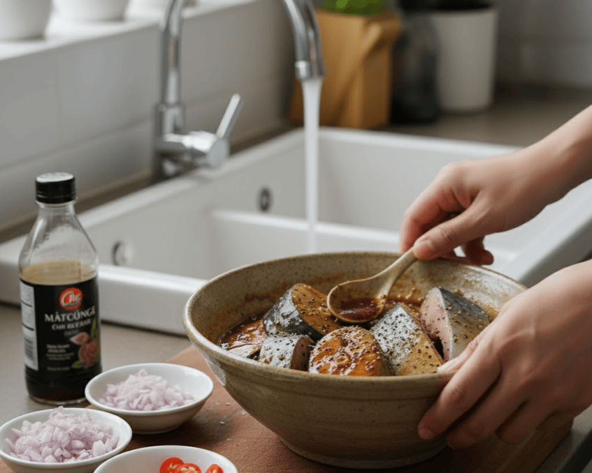 - Hương vị: Đậm đà, ngọt mặn hài hòa từ nước mắm, đường, gia vị truyền thống. Vị cá thơm ngon, béo bùi đặc trưng của cá thu.