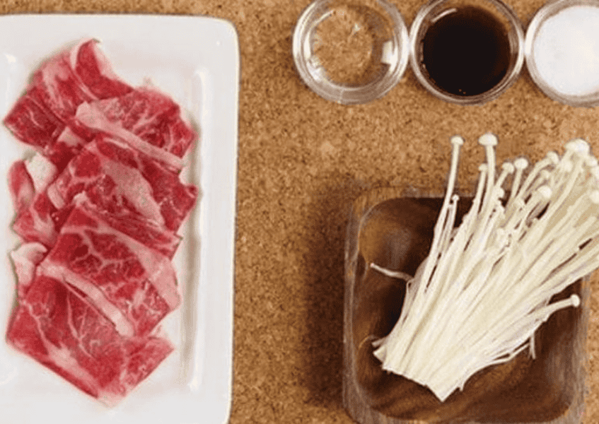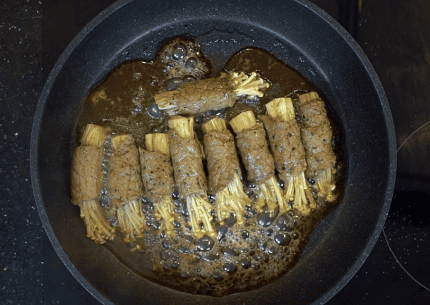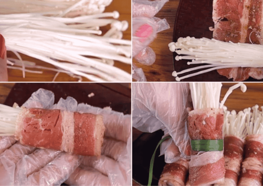 Cách làm ba chỉ bò cuộn nấm kim châm nướng chuẩn vị nhà hàng