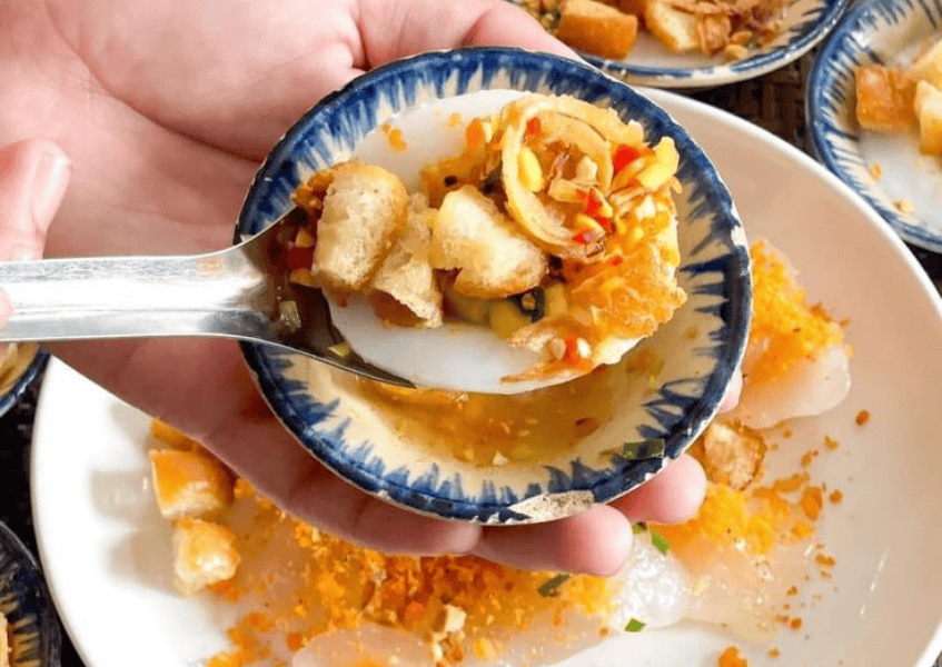 Ăn bánh khi còn nóng để cảm nhận độ mềm mướt của bánh bèo hòa quyện cùng vị mặn ngọt của tôm cháy, béo của mỡ hành và đậm đà của nước chấm – đúng chuẩn hương vị Huế truyền thống.