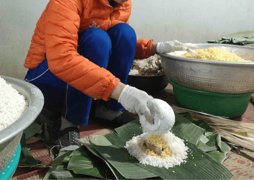 Cách chế biến: Bánh được gói bằng tay tỉ mỉ từ gạo nếp, đậu xanh, thịt lợn ba chỉ và lá dong, sau đó luộc liên tục từ 8–10 tiếng ở nhiệt độ sôi đều để bánh chín đều, thơm dẻo.