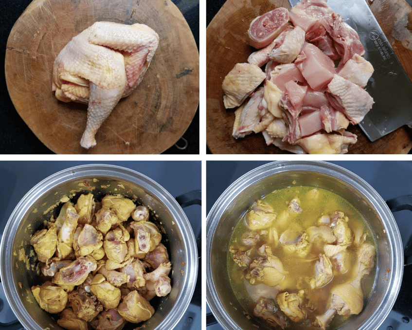 - Đổ nước vào nồi xâm xấp mặt gà.
