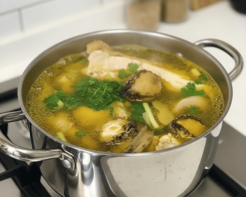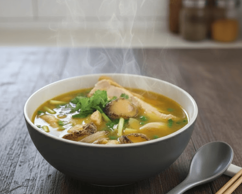 - Hương vị: Ngọt thanh từ xương thịt gà, kết hợp vị biển nhẹ của bào ngư.