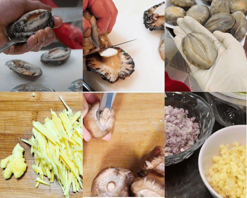 - Bào ngư rửa sạch bằng nước muối loãng, tách thịt khỏi vỏ rồi cắt hình vảy rồng nhẹ để thấm gia vị.