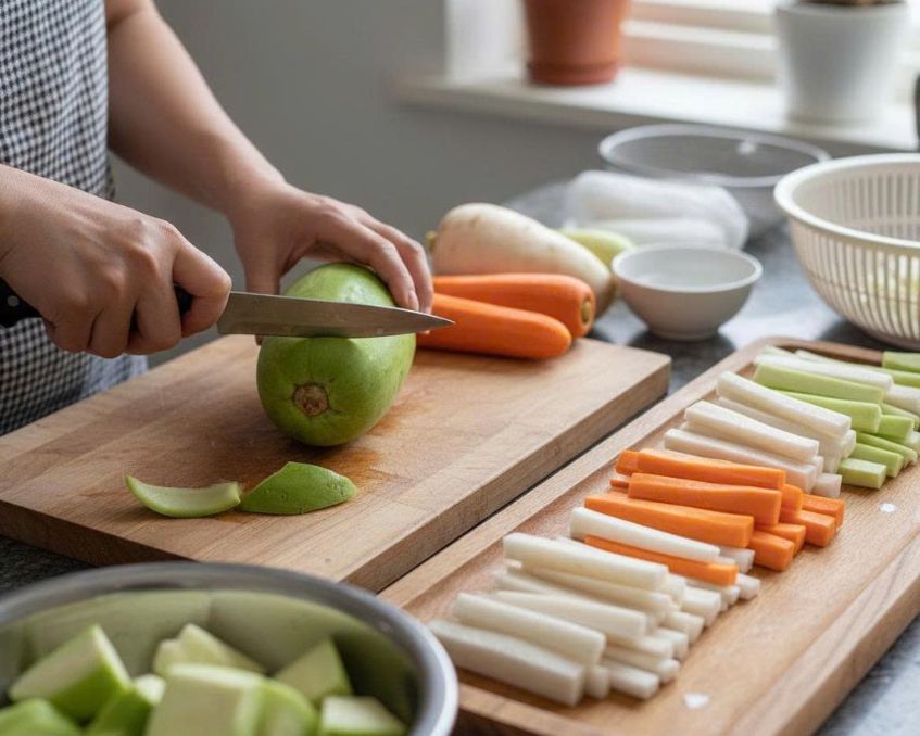 1. Sơ chế và cắt củ quả