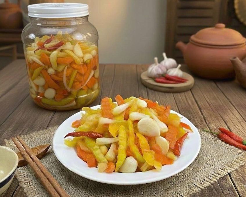 • Hương vị: Mặn ngọt hài hòa, thơm mùi nước mắm đường, điểm vị cay nhẹ của ớt và mùi tỏi. Củ quả giòn, không mềm nhũn.