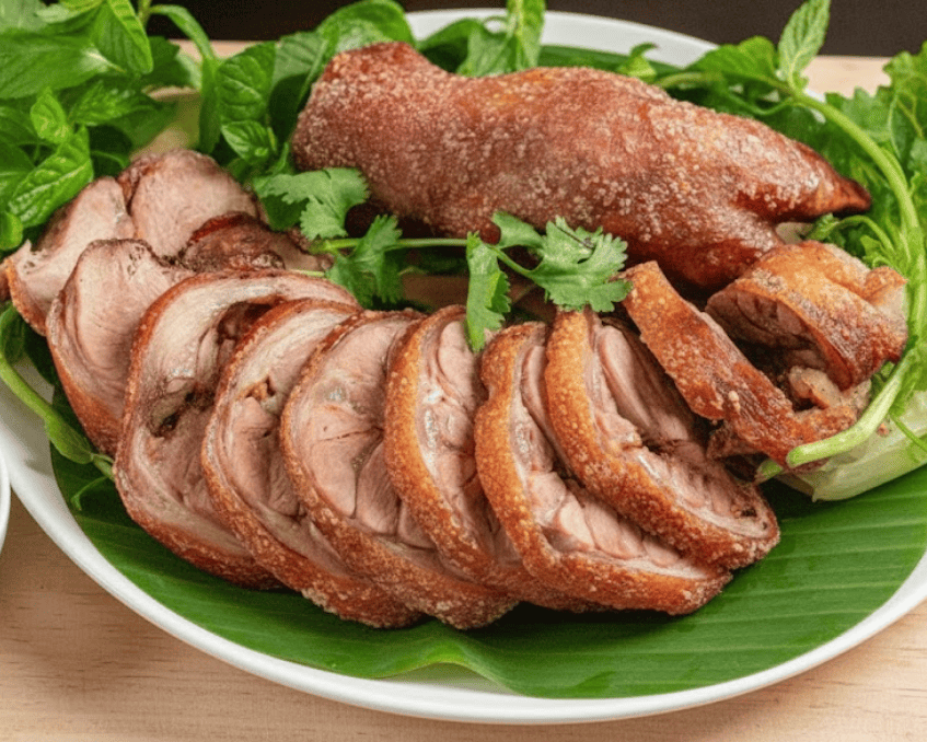 Đùi heo quay giòn da là món ăn truyền thống được nhiều gia đình Việt yêu thích. Món này nổi bật với lớp da vàng óng, giòn rụm và phần thịt bên trong mềm, ngọt tự nhiên. Cách chế biến đùi heo quay kết hợp các gia vị cơ bản như muối, đường, tiêu và tỏi để tạo hương vị thơm lừng, đậm đà.
