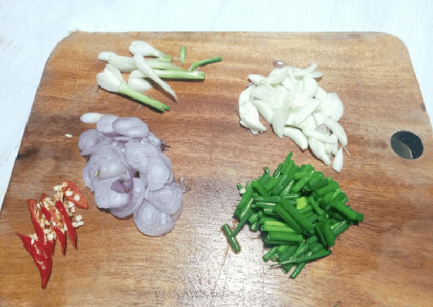 - Cho dầu ăn (10 ml) vào nồi, phi thơm phần hành tỏi băm còn lại.