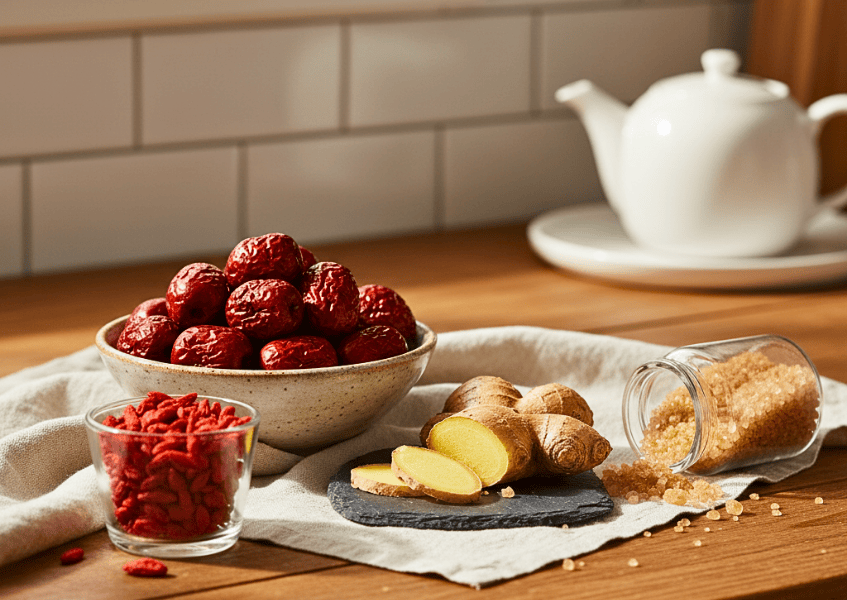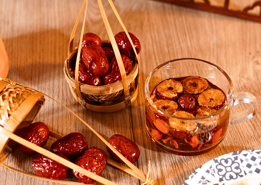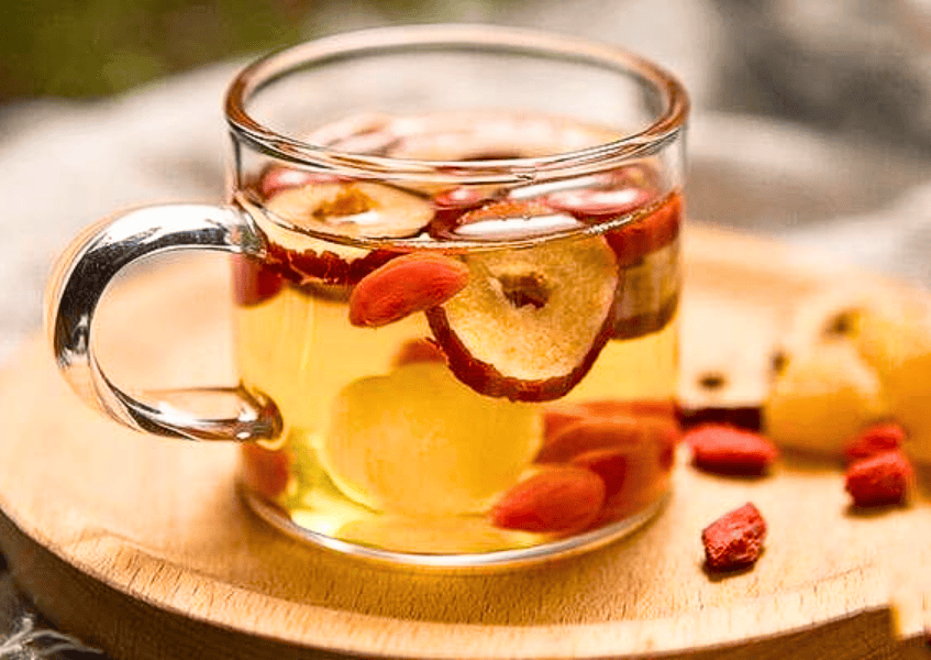 - Cách chế biến: Phương pháp nấu/ hãm các nguyên liệu khô với nước sôi trong khoảng 15−20 phút để dưỡng chất từ táo đỏ và kỷ tử tan ra hết trong nước.