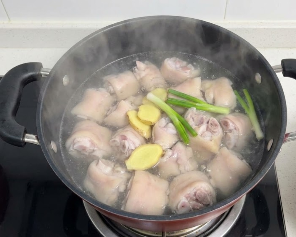 • Cho chân giò vào nồi, thêm nước ngập mặt