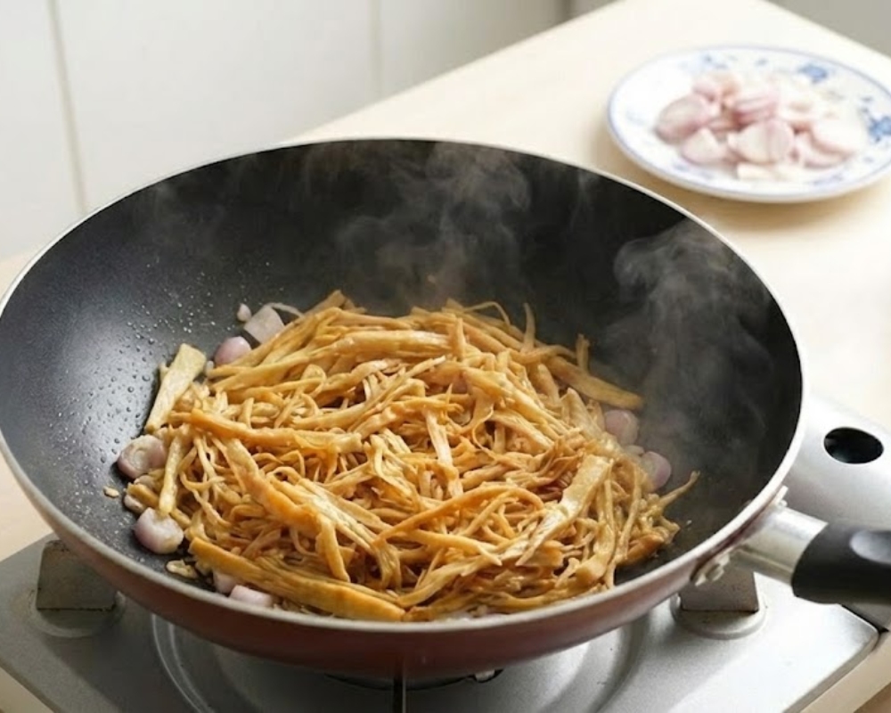 • Xào 5–7 phút giúp măng thơm và thấm vị