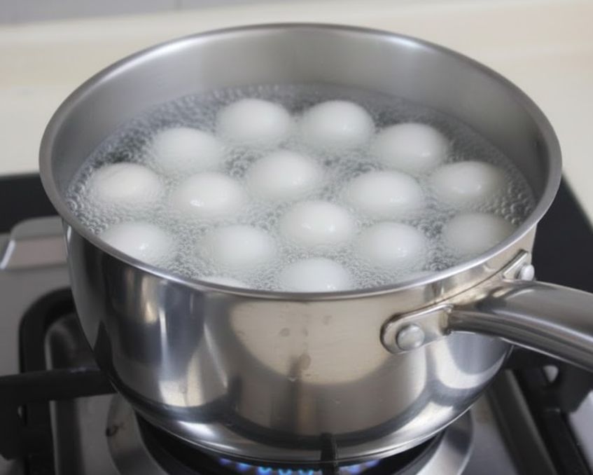 - Đun nồi nước sôi 95–100°C, thả viên vào (không thả quá dày).