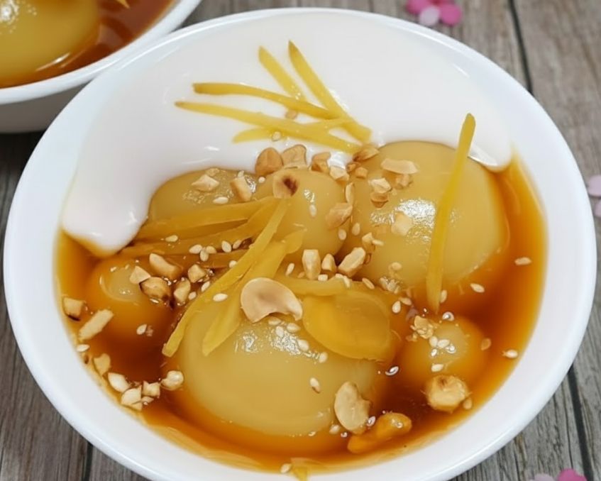 - Hương vị: Ngọt thơm gừng, béo mịn nước cốt dừa, nhân đậu xanh bùi; viên nếp dẻo dai nhẹ, không nhão.
