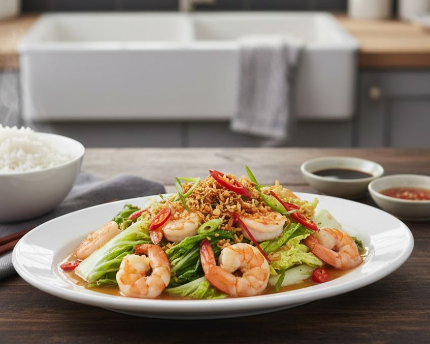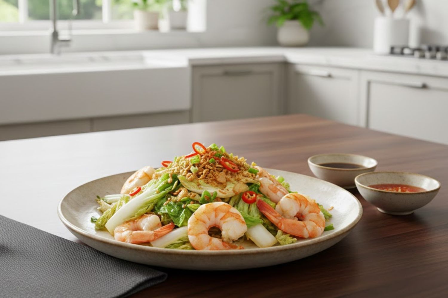 Cải thảo xào tôm tươi – Món xào thanh vị giàu dinh dưỡng
