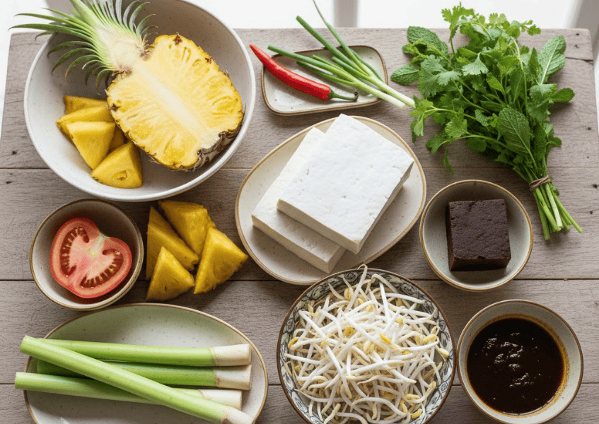 - Cách chế biến: Món canh được nấu bằng cách đun nước dùng từ rau củ, nêm nếm gia vị vừa miệng rồi thêm đậu hũ, cà chua, dứa, bạc hà và giá đỗ vào sau cùng để giữ độ giòn ngọt.