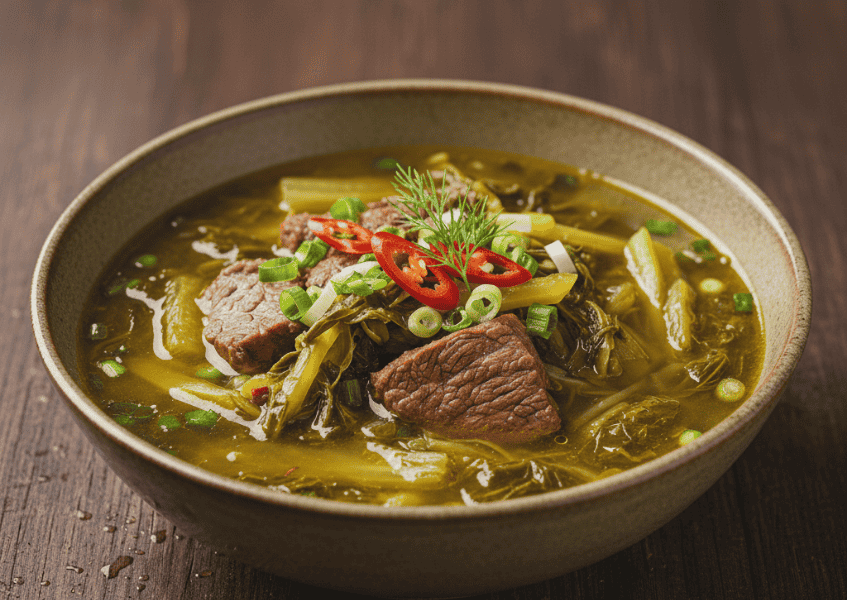 Canh dưa cải nấu nạm bò – Món canh dân dã, chua thanh, bổ dưỡng cho mọi bữa cơm