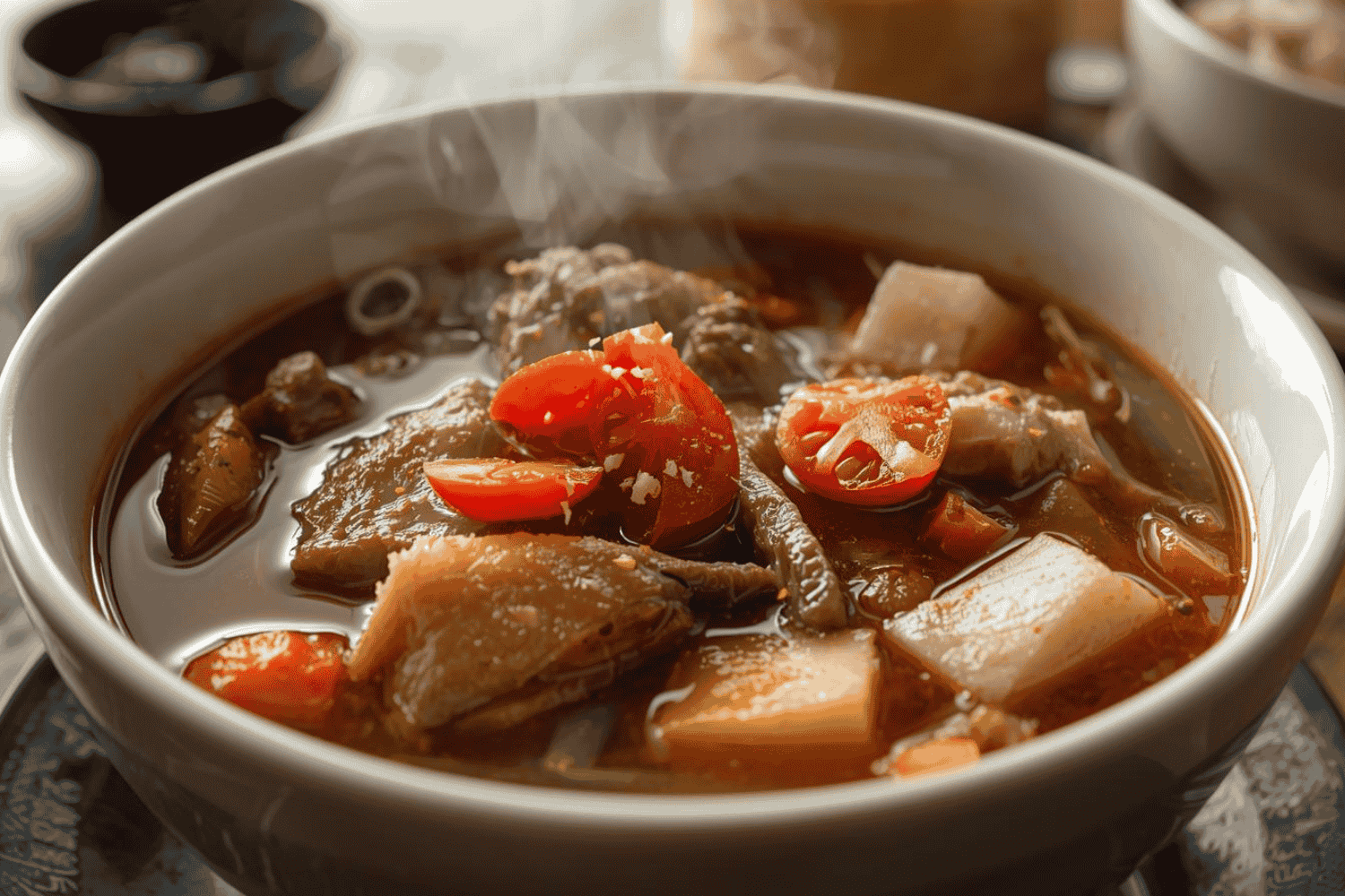 Canh gân bò chua cay là món ăn mang đậm hương vị Á Đông, kết hợp hoàn hảo giữa vị chua thanh, cay nhẹ và ngọt tự nhiên từ thịt bò. Gân bò được nấu mềm nhưng vẫn giữ được độ giòn, hòa quyện cùng các loại rau thơm và gia vị đậm đà, tạo nên món canh vừa ngon miệng vừa giúp ấm bụng trong những ngày se lạnh.
