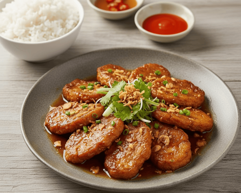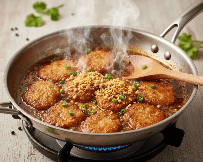 - Hương vị: Vị giòn rụm của lớp vỏ chiên, thơm nồng mùi tỏi. Độ dai, ngọt tự nhiên của chả cá thát lát đậm đà vị mắm.