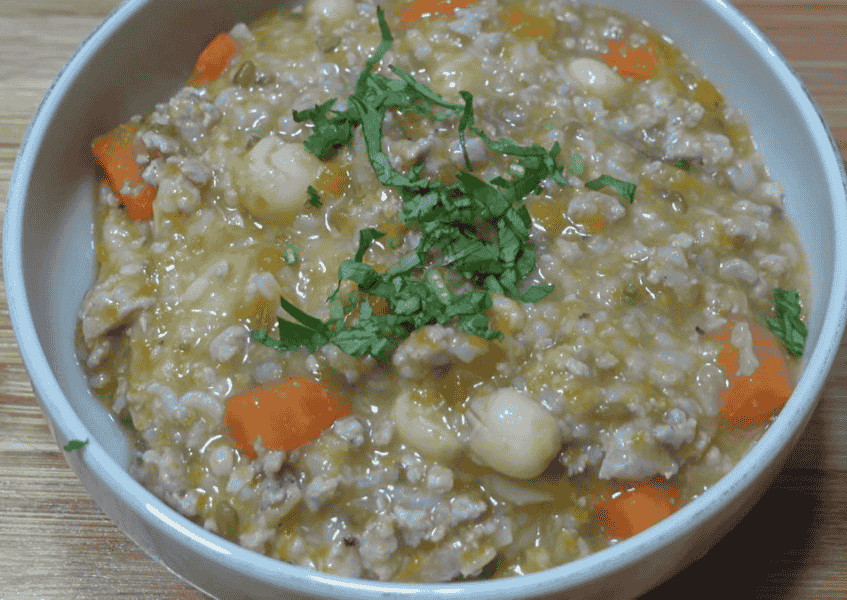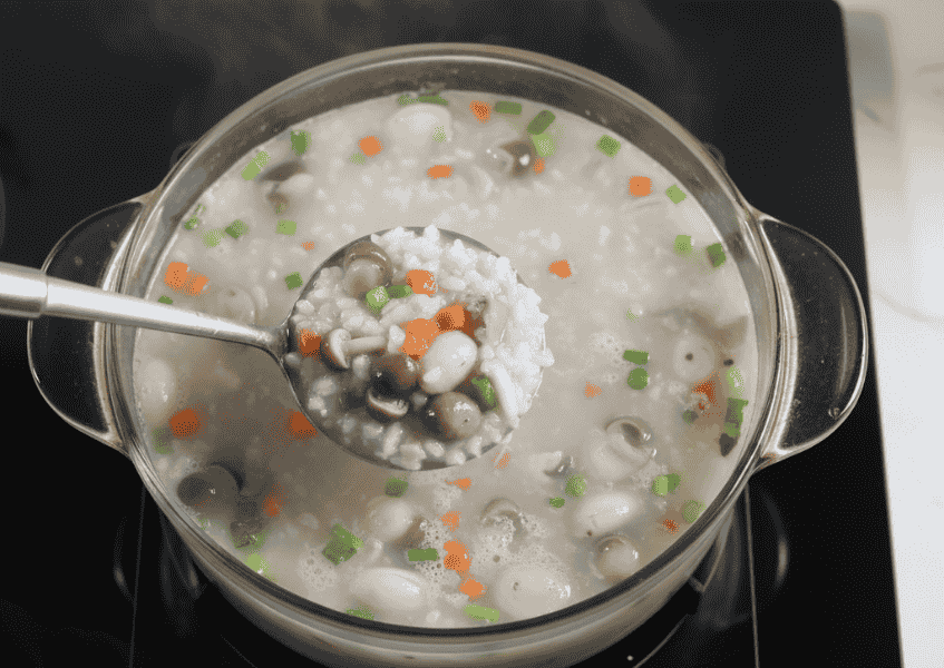 Cháo thịt bằm rau củ hạt sen nấm rơm thơm ngon