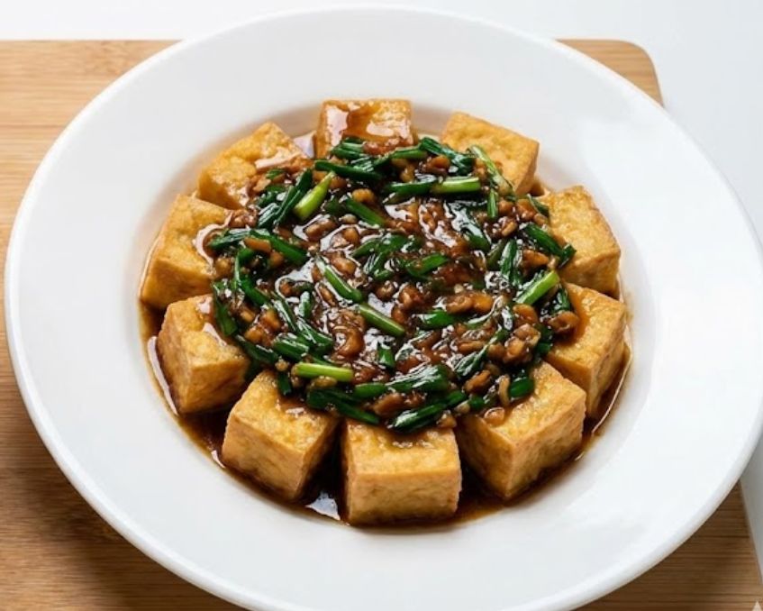 - Cách trình bày và thưởng thức: Đậu hũ mắm hẹ ngon nhất khi dùng nóng, ăn kèm cơm trắng. Khi trình bày, xếp đậu hũ ra đĩa rồi rưới nước mắm lên trên, có thể thêm chút tiêu hoặc ớt để tăng hương vị.
