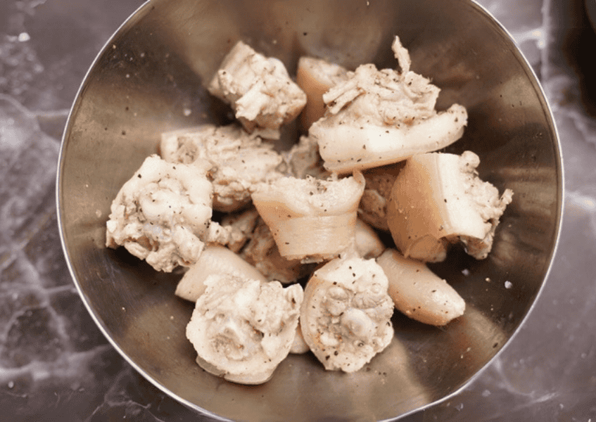 • Cắt đuôi heo thành khúc vừa ăn, để ráo.