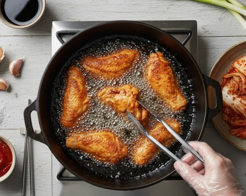 Gà chiên sốt tương tỏi giòn rụm, chuẩn vị Hàn Quốc