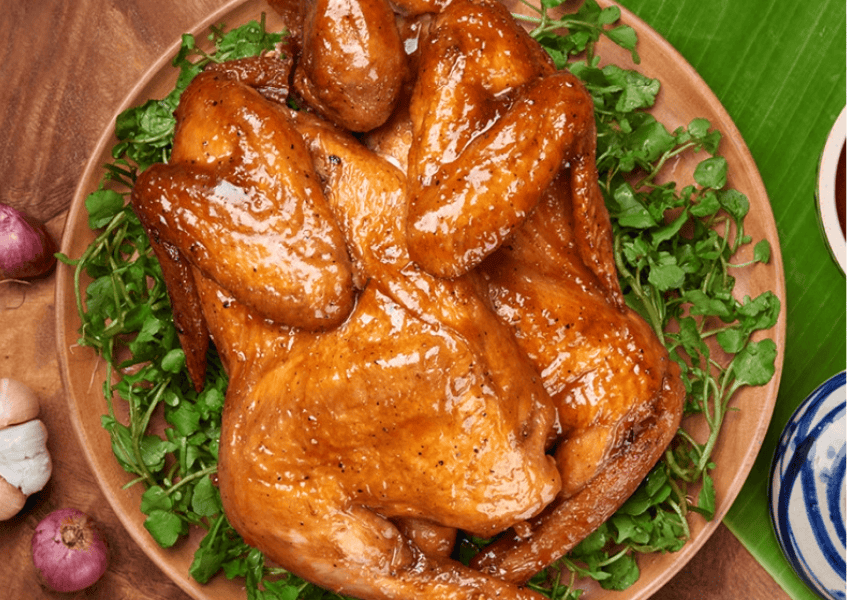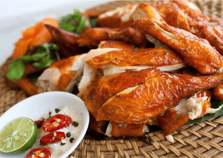• Hương vị: Lớp da vàng óng, giòn nhẹ, thấm vị ngọt mặn hài hòa, thịt gà thơm mềm.