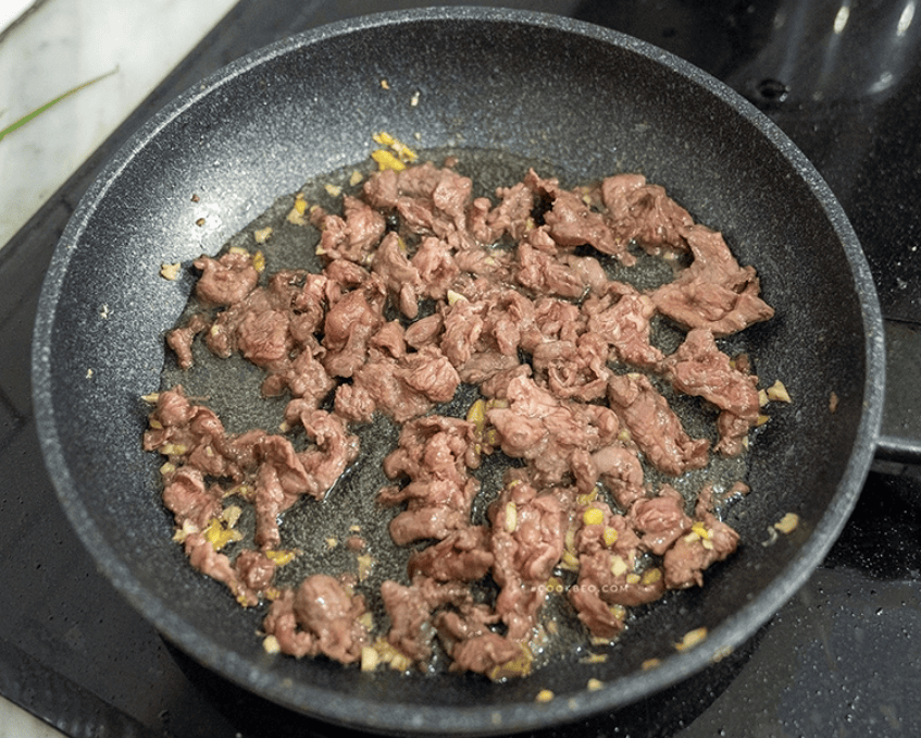 - Thịt bò rửa sạch, luộc hoặc áp chảo vừa chín tới, thái lát mỏng
