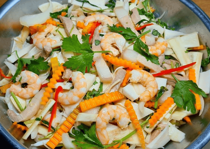 Gỏi củ hủ dừa tôm thịt: Công thức gỏi thanh mát, giòn ngọt đặc sản Bến Tre