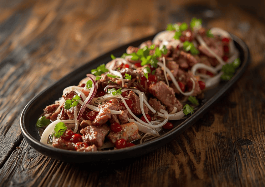 Bắp bò trộn gỏi hành tây là món ăn khai vị hấp dẫn trong ẩm thực Việt. Sự kết hợp hài hòa giữa bắp bò mềm giòn, hành tây thanh mát và nước trộn chua cay tạo nên một món ăn chống ngán tuyệt vời, phù hợp trong tiệc nhậu, liên hoan hoặc bữa cơm gia đình.