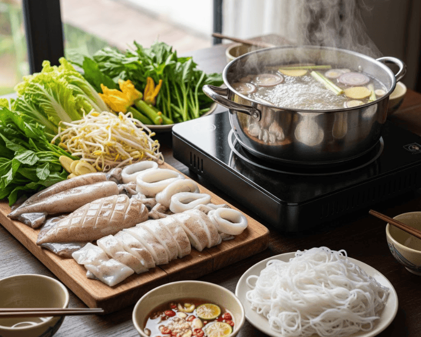 Lẩu mực nhúng giấm – món ăn thanh mát, đậm đà vị biển