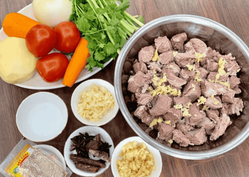 - Nguyên liệu chính: Nạm bò, cà rốt, khoai tây.