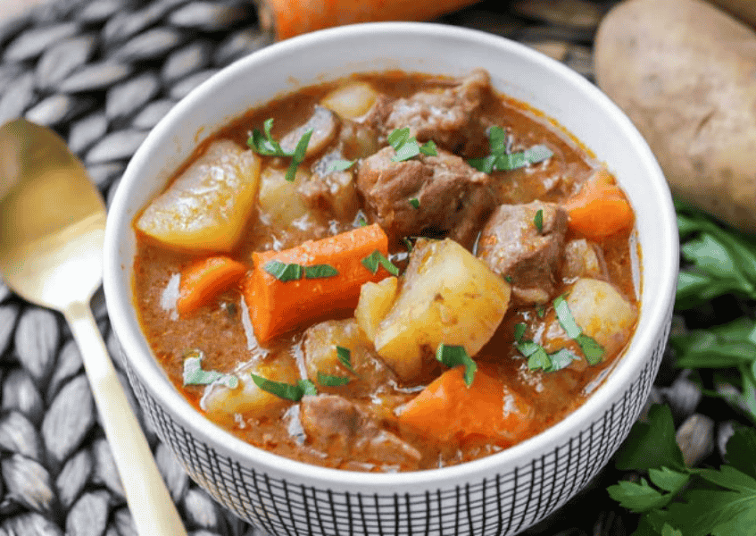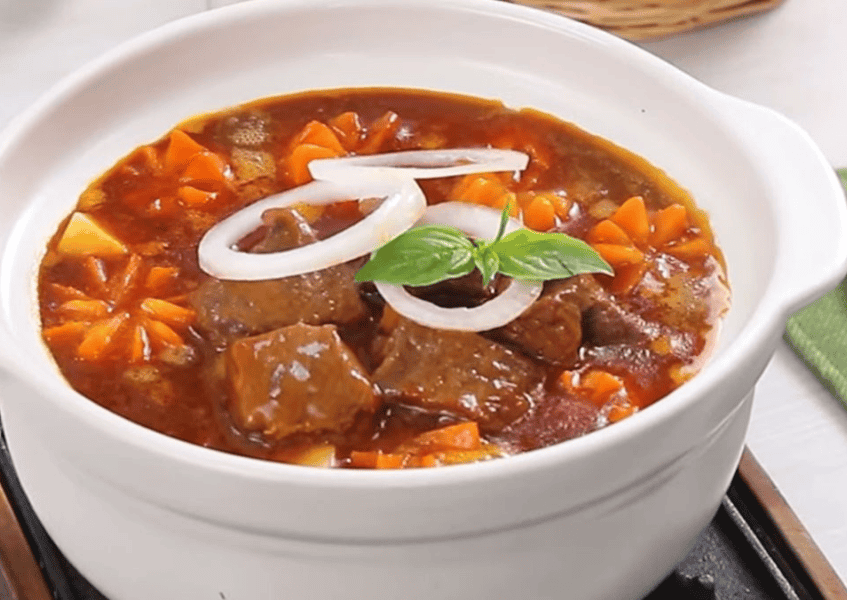 - Cách chế biến: Thịt bò được ướp rượu vang, gia vị, sau đó hầm chậm để thấm vị. Cà rốt và khoai tây được thêm vào nấu vừa chín tới, giữ được độ mềm và vị ngọt tự nhiên.