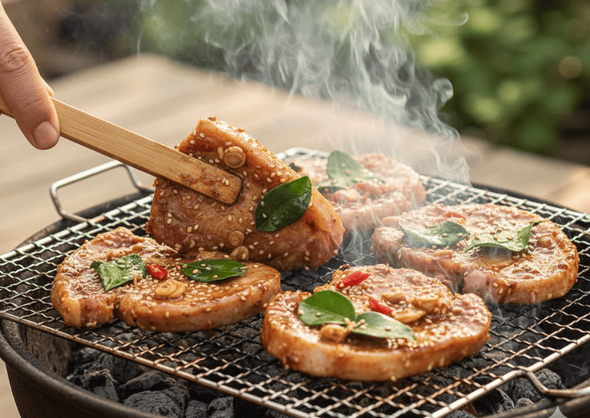 • Cách trình bày và thưởng thức: Thịt nướng được bày ra đĩa, thường ăn kèm với cơm trắng, bún tươi, hoặc cuốn với bánh tráng và rau sống, chấm kèm nước mắm chua ngọt.