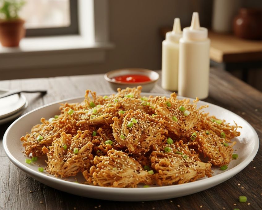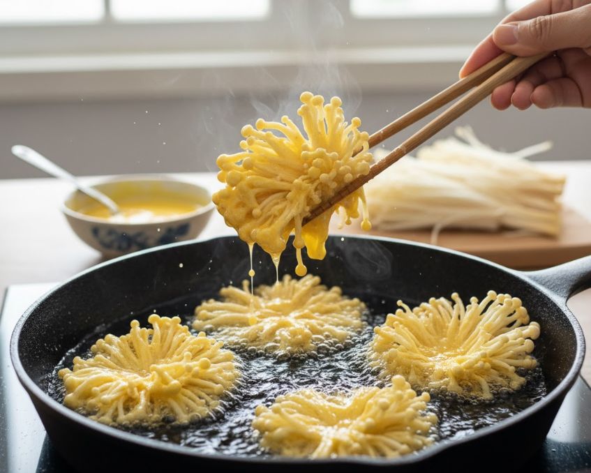 Nấm kim châm chiên giòn – Món ăn vặt vàng ruộm hấp dẫn