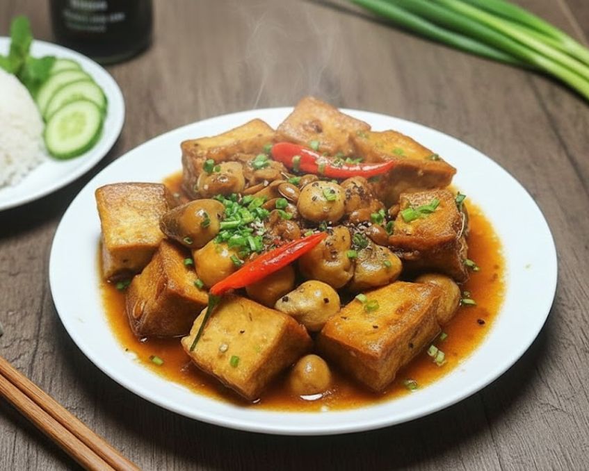 Nấm rơm kho đậu hũ đậm vị – Món chay dễ làm mỗi ngày