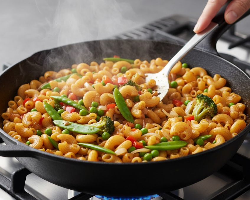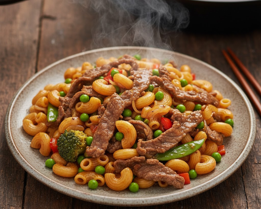 Cách chế biến: Chỉ cần vài bước đơn giản – luộc nui, xào bò, rồi trộn chung trên chảo – là bạn có ngay món ăn thơm ngon, dễ thực hiện trong 30 phút.