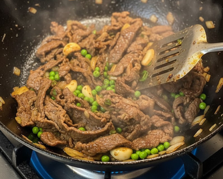 Hương vị: Mặn mà, thơm nức mùi tỏi phi và thịt bò, xen lẫn chút béo nhẹ từ dầu ăn và vị ngọt tự nhiên của rau củ.