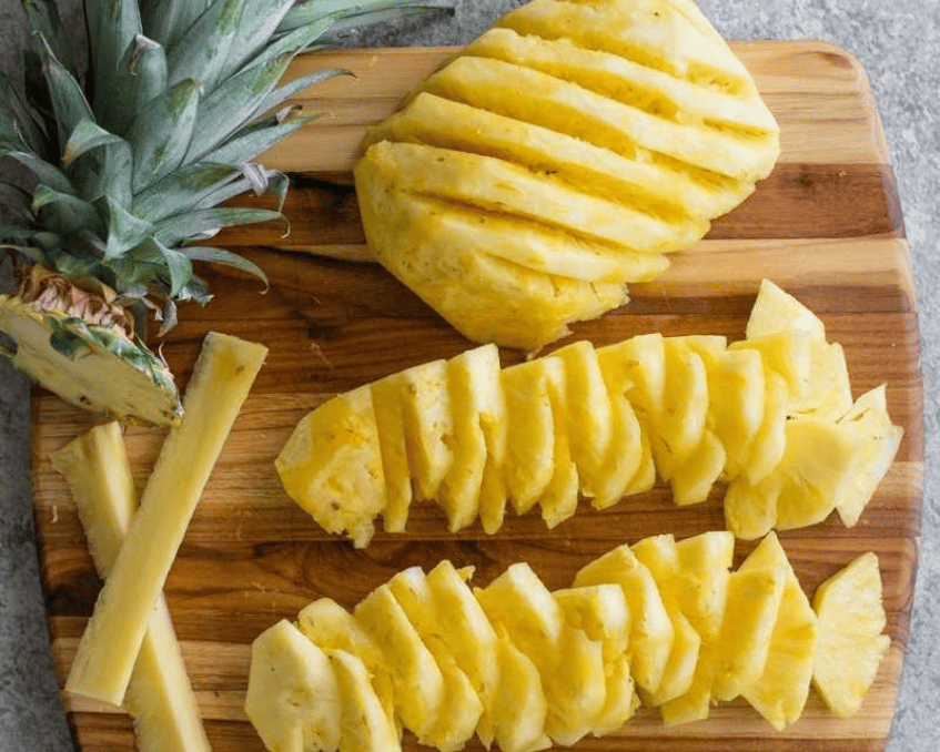 • Bổ đôi quả thơm, cắt bỏ phần lõi cứng ở giữa.