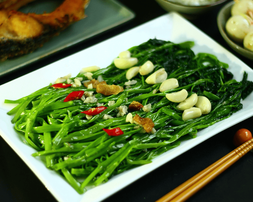 Rau muống xào tỏi – món xào dân dã, giòn xanh và thơm nức hương tỏi