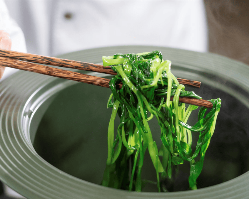 Đun sôi nồi nước, cho chút muối và vài giọt dầu ăn, rồi cho rau vào chần nhanh 30 giây – 1 phút.
