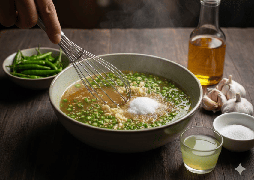 - Ớt: Sử dụng ớt xiêm xanh (hoặc ớt hiểm Thái) là bắt buộc để có được độ cay đặc trưng và màu xanh hấp dẫn.
